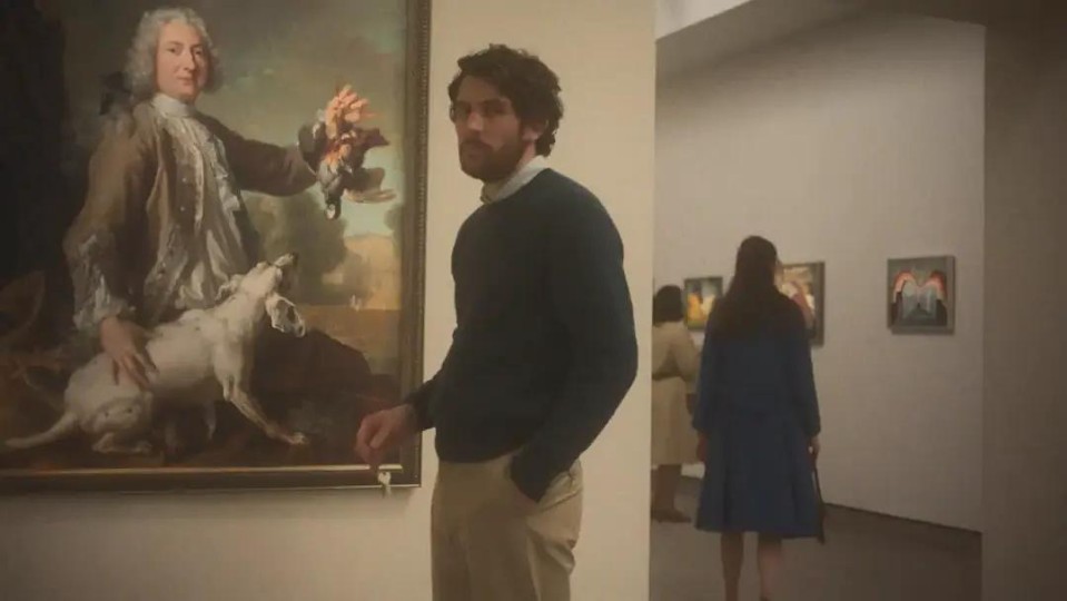 如何定义莱卡特拍电影的方法?她的作者生涯一直在尝试翻页式的拍法,盗窃结果完成,失重的天平于是不可逆地倒向了即将颓败的另一端:没有人会怀疑Josh最后不会被捕,即使他费力地掩盖和涂抹证据。那么拍摄的过程就像一张解题步骤清晰的草稿:一个画面场景承载一个行为,一页画纸传递一条信息。所以Josh行动的过程显得那么谨小慎微蹑手蹑脚,因为莱卡特不得不事无巨细地画出每一个步骤。不得不回想起一些反例:德斯普里钦的《属于我们的圣诞节》里人物都处于高维度的空间,一个简单摔盘子的动作可以在棱镜中四散成四张不同画面,一间教室里所有人物的神情。但莱卡特是绝对的平面化,插画化。这是她自己简练内容的一套语法。她在这里提供了一种迥异的观看经验:当我们看到Josh抚摸胡茬,观摩墙上画作时,他所看到的远远不止其艺术特质,而是在悄然间被替换成受评估的可售价值。这是一套彻底的有关于图像的语法。盗窃作为一体两面的行为,它孤立于任何背景和人物基础。莱卡特先用几组画面为我们解释了这一切动作的缘由。而在盗窃的逻辑生效后,又骤然将天平推向了失衡的另一极。