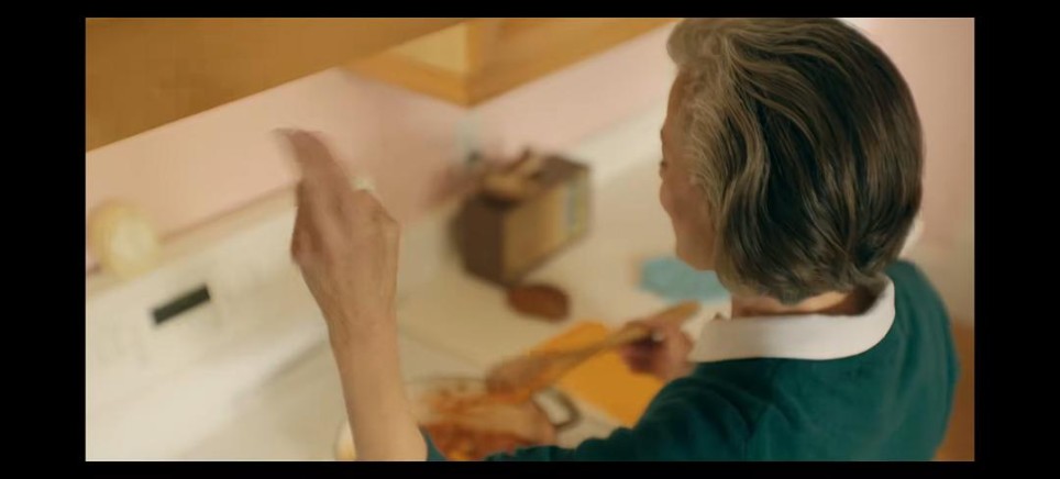 来到影片的第二幕,查克停在一个鼓手面前,那一刻,他并不知道为何驻足于此。但通过快速的闪回镜头,我们知道,他回想起了奶奶在厨房一边用锅铲打着节拍,一边舞动的场景。