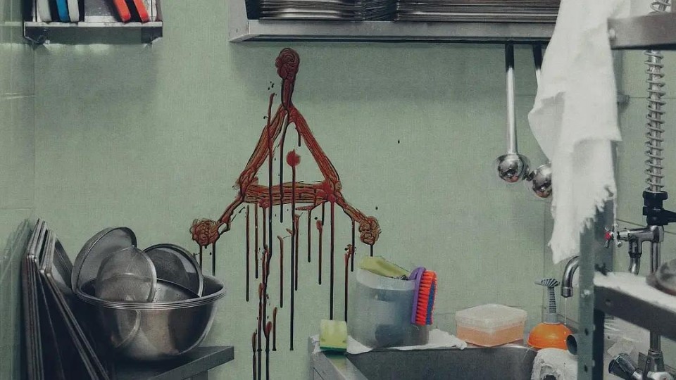 3. 最后再来聊聊《怪奇收割》中的杀人手法和习惯。面具几乎已经变成了连环杀手恐怖片中最典型的一个因素,从上世纪的《月光光心慌慌》《惊声尖叫》《猛鬼街》《德州电锯杀人狂》再到这世纪的《忌日快乐》《断魂小丑》,越来越多各具特色的面具杀手涌入我们的视野。 至于这个杀了人在现场留下自己独特符号的习惯,就不得不提到美国上世纪的一个连环杀手——理查德·拉米雷兹。拉米雷斯是《美国恐怖故事9:1984》的杀手原型,也是去年《X》系列的终章《玛克辛》里夜行者的原型。他被称为夜行者,喜欢在作案现场画一个倒五芒星的图案,这和电影里莱斯利·赛克斯在现场留下三点的三角形习惯是不是很像,且他的受害者和拉米雷兹一样并无固定群体,上到老人下到小孩,这让当时的警方很是头疼。