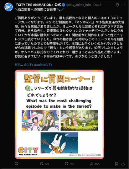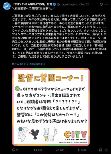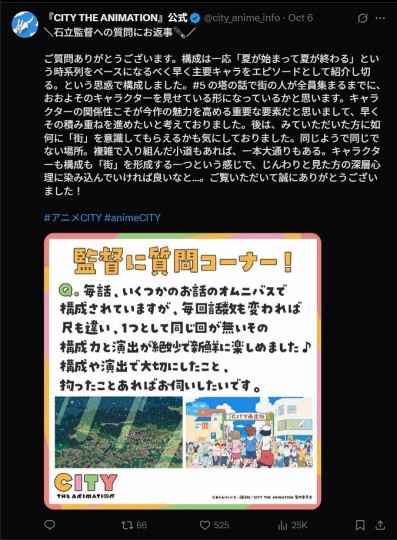 存一下《CITY》官方X发布的石立导演Q&A。